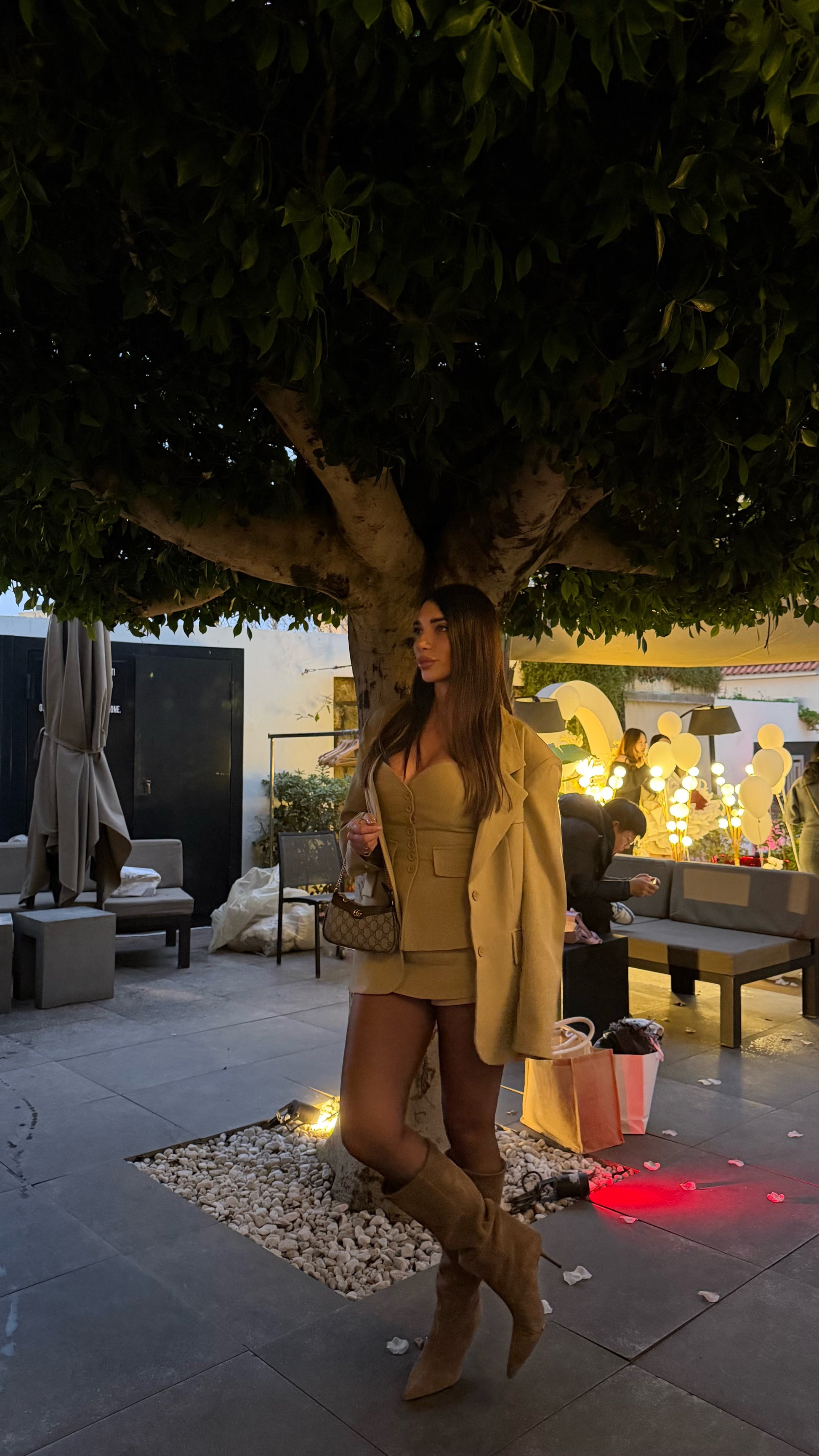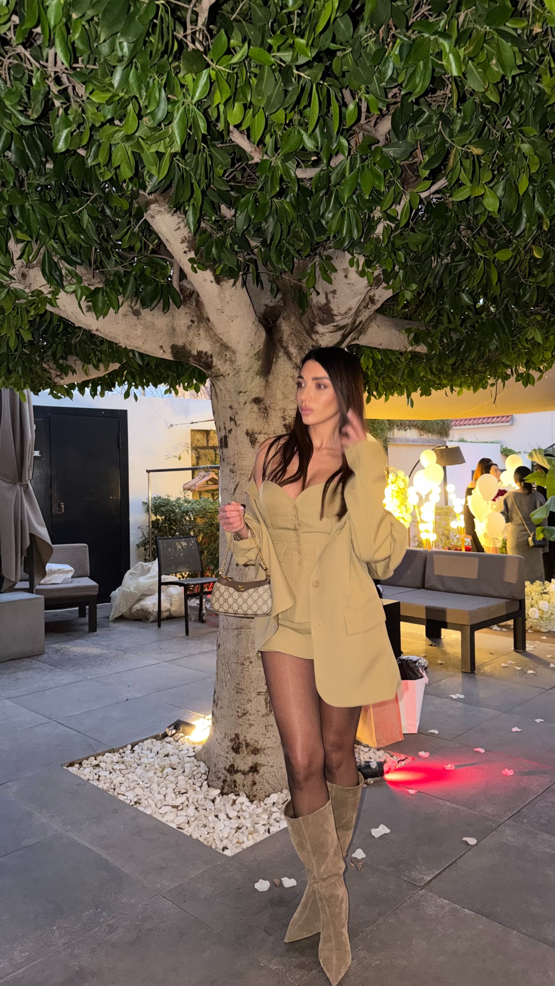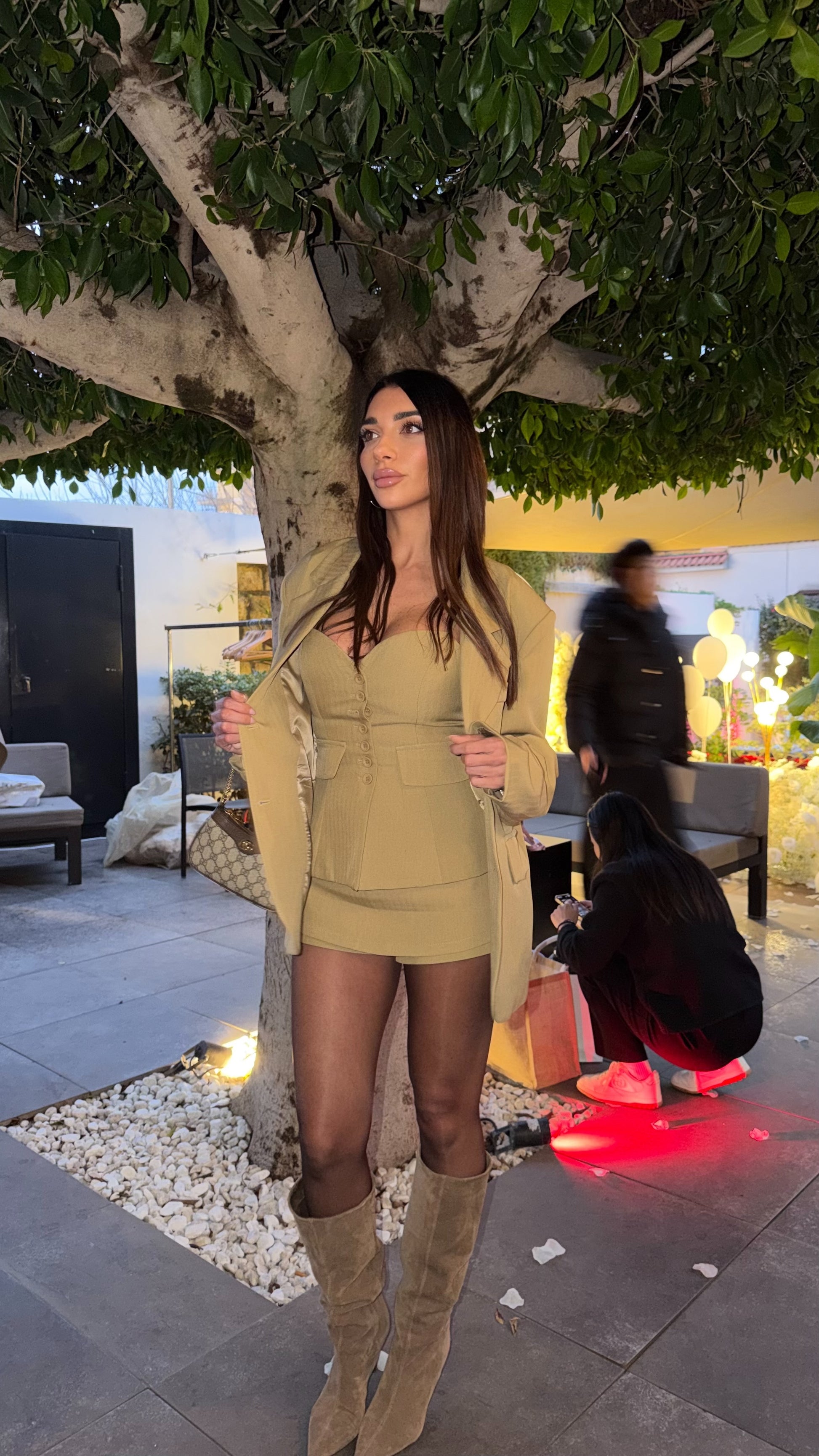 Coordinato Scopri il Coordinato 3pz, un insieme elegante e versatile composto da gonna pantaloncino, corpetto e giacca, realizzato con materiali di alta qualità. Ogni pezzo è progettato per esaltare la tua figura e offrirti comfort e stile in ogni occasione. Indossa la tua sicurezza e fai brillare la tua personalità!Ros indossa tg S vestibilità regolare